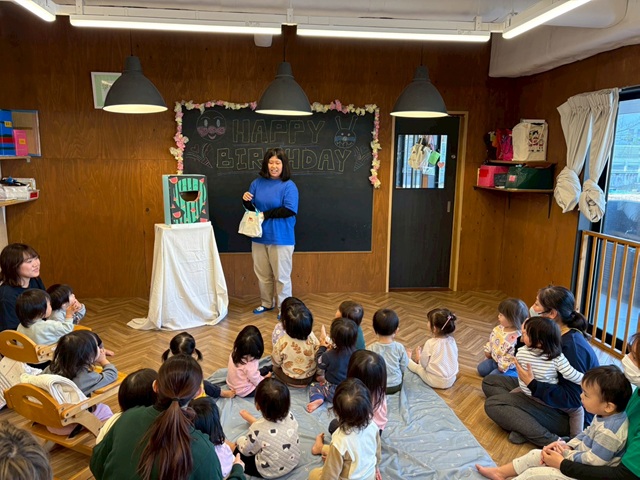 みんなで一緒にお話しを聞いたり、ハッピーバースデーの歌を歌ってお友だちのお祝いをしました☆