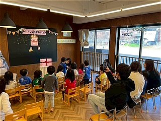先生からの出し物をニコニコしながら見たり、「おめでと~!」とお祝いの言葉を伝える子どもたちの姿がとても可愛かったです♡